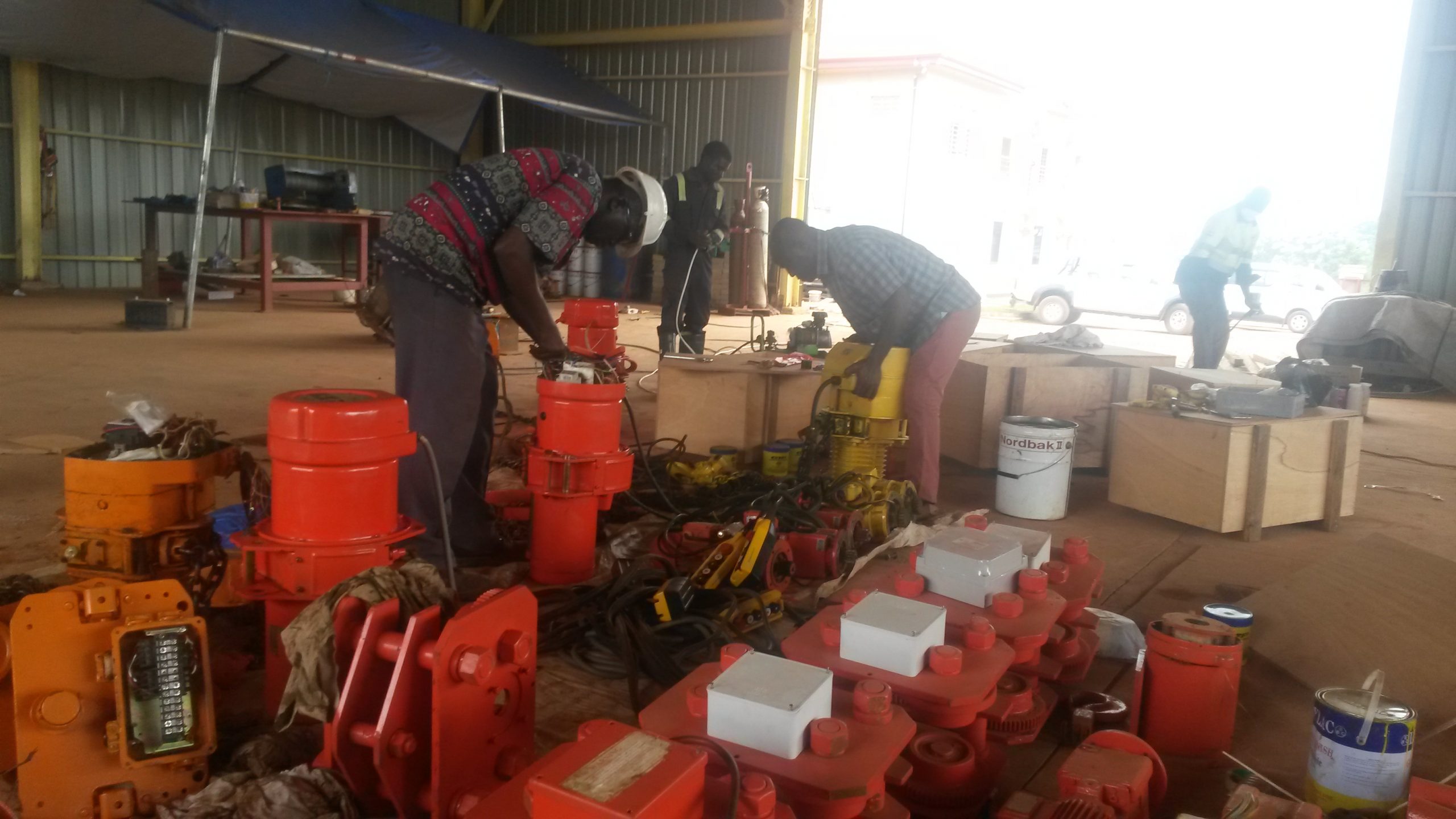 • Gyratory Crusher mantle and concave rebuild, crusher internal inspection.
